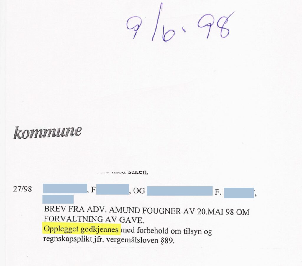 9. juni 1998 bestemte overformynder i Nesodden, jusprofessor Erik Røsæg, at min far skulle få fortsette med verdipapirhandelen på min regning, til tross for at det brøt både verdipapirloven og vergemålsloven.